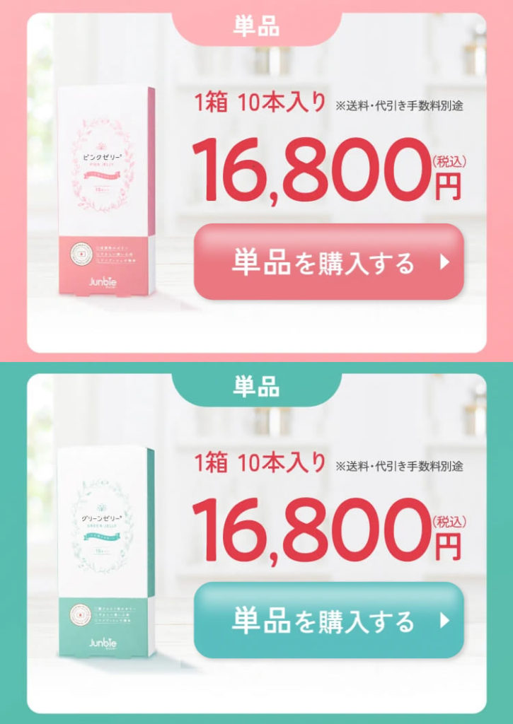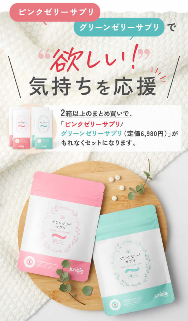 ジュンビーから発売されている『ピンクゼリー』『グリーンゼリー』の品質や期待できる効果、コスパといった料金面や特典・アフターサービスまで、厳しくチェックして評価します!
